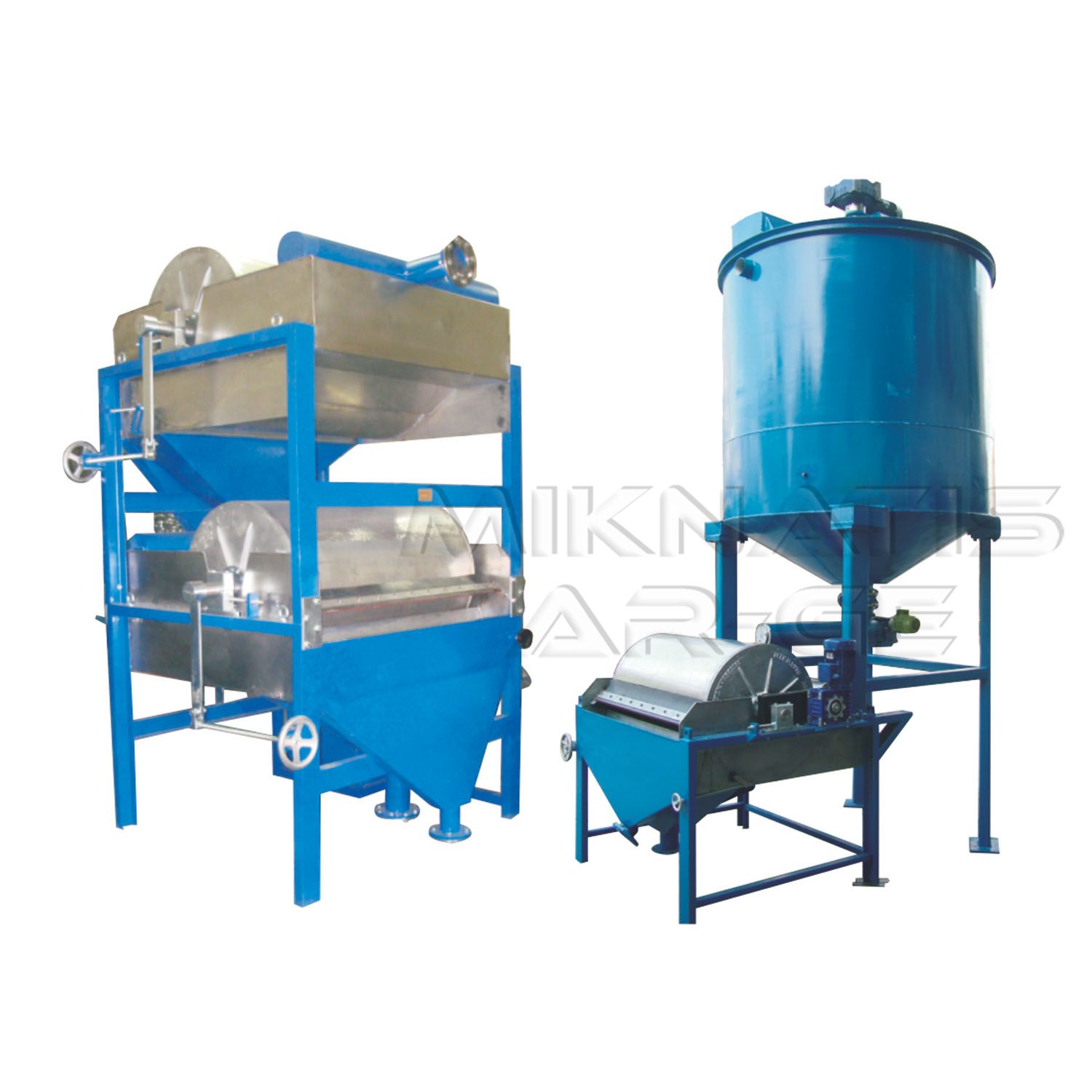 The system with a semi-magnetic drum infrastructure with High Field Intensity (NdFeB -Neodymium Magnets) is used for cleaning ferromagnetic Fe – iron derivatives with low magnetic sensitivity in ceramics etc.